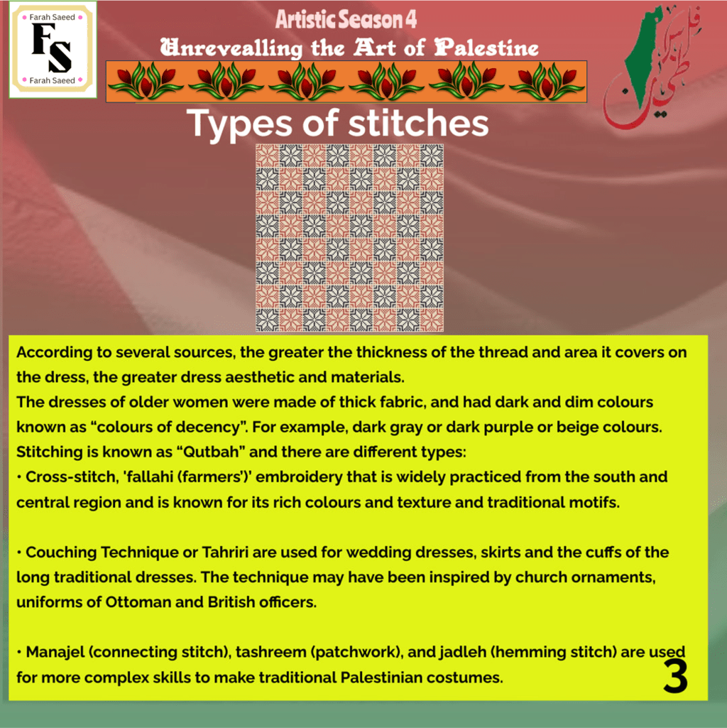 Using silk thread on wool, linen or cotton. The art of Palestinian embroidery is preserved and respected for cultural heritage and beauty…