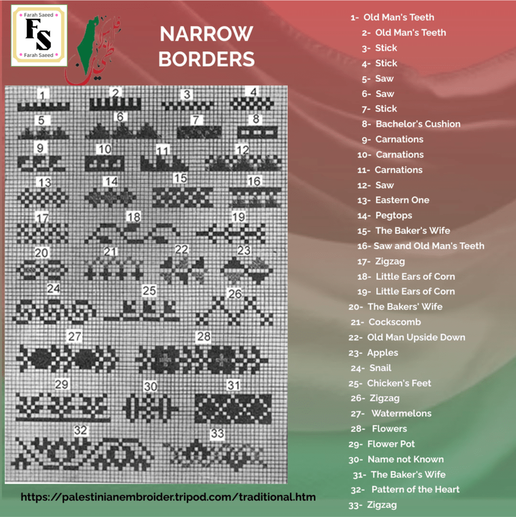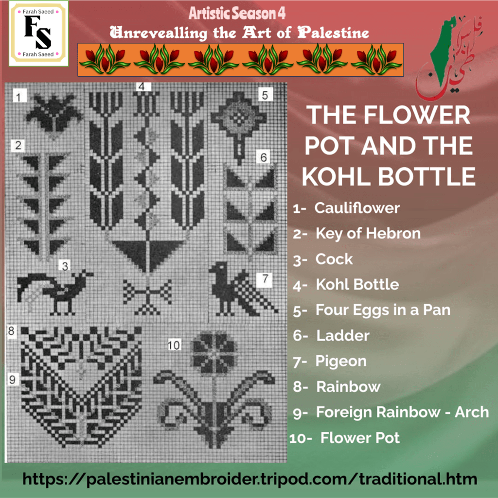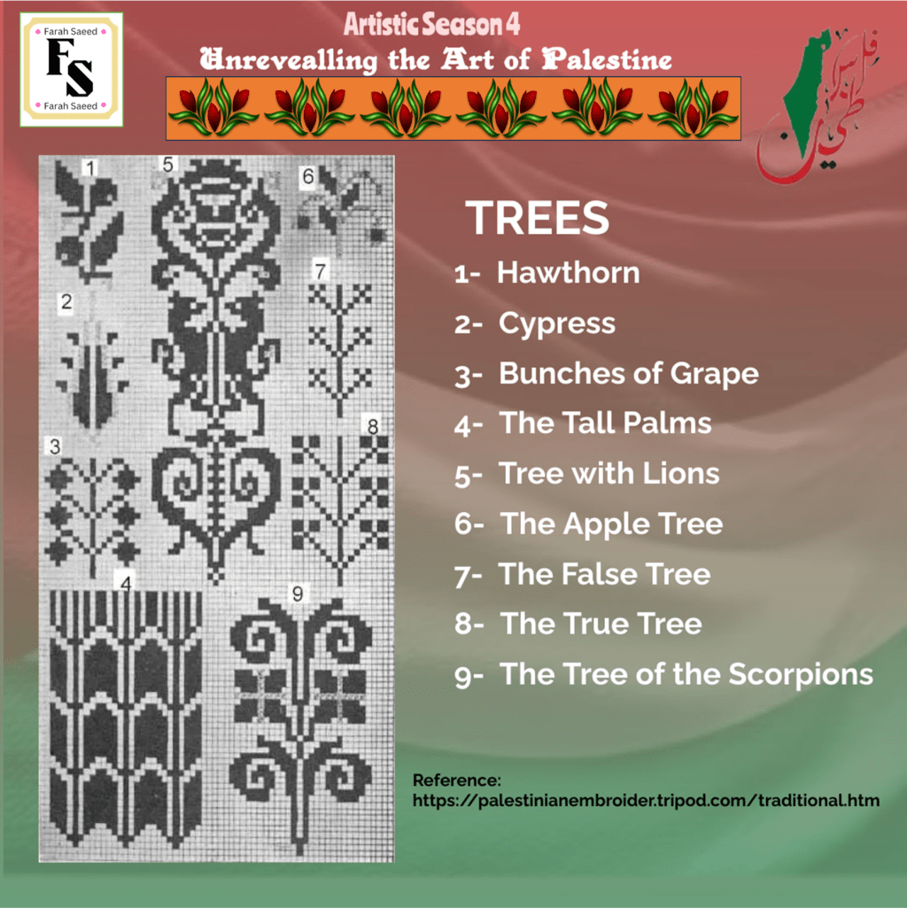 Palestinian art and culture are deeply rooted and intertwined with the Levantine and other cultures and religions, traced back centuries, influencing the food, language, music, and art. At first, the Byzantine two-dimensional patterns were heavily applied in the area during its era and later reemerged in the 19th century by the Christian monks (Fullmer, n.d.). After the advent of Islam in 634 AD, the motifs, symbols, and shapes were integral to the conventional and contemporary Palestinian art that is taught, cherished, and passed down from generation to another like a domino effect, to respect and protect the Palestinian traditional heritage.