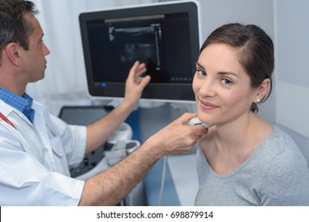 Ultrasound also known as sonogram uses sound waves with high frequency to create an image and can detect a range of cancers. For example, cysts or lumps can observed around the testicles or scrotum (the sac that holds the testes) for testicular cancer. It can help with neck examination of the lymph nodes in examining areas for suspected head and neck cancers. A gel is added onto the neck where the ultrasound probe or transducer moves around the area to produce sound waves as presented in Figure 10. These are transmitted to the computer device as a picture builds up. Samples of cells from the lump can be extracted using a fine needle. This process is called fine needle aspiration biopsy (MacMillan Cancer Support, 2022c).