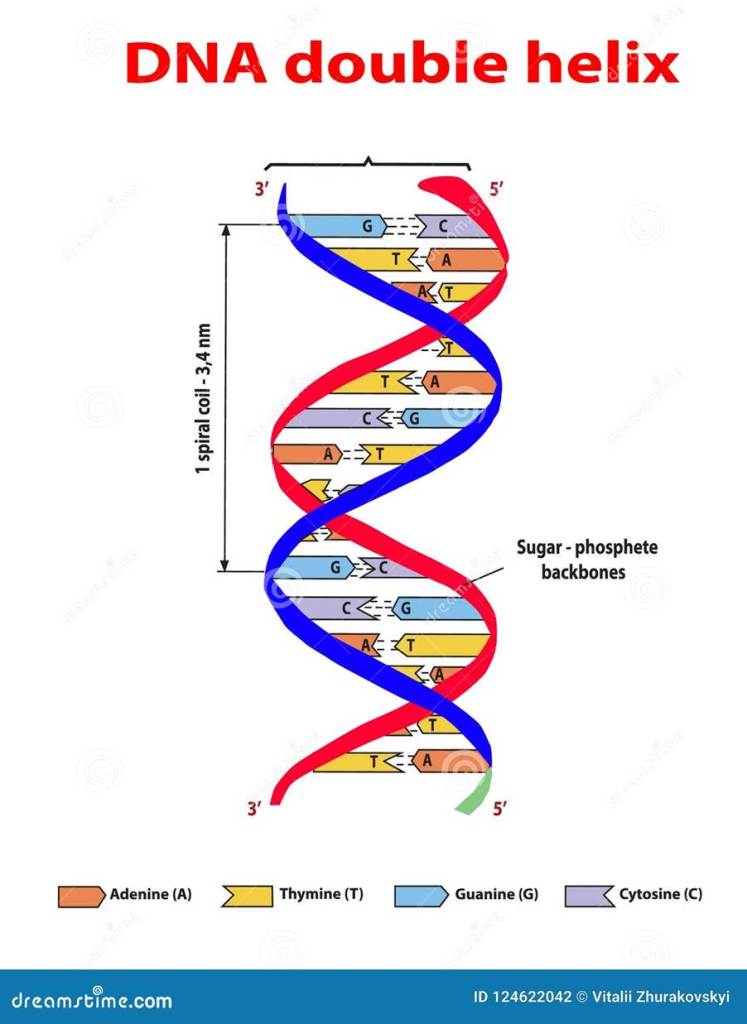 A polynucleotide has a free phosphate group at one end, called the 5′ end. The phosphate group is bound to position carbon 5′ of the ribose sugar to form the sugar-phosphate backbone. There is a 3’ end where a hydroxyl (-OH) group is in position carbon 3’ of the ribose sugar. In 1953, the structure of DNA was discovered by four scientists, Francis Crick, Rosalind Franklin, James Watson, and Maurice Wilkins using X-ray crystallography. They found two polynucleotide strands wounded together by hydrogen bonding to strengthen and stabilise its structure from damage – please see Figure 4 (Brooker et al., 2008).