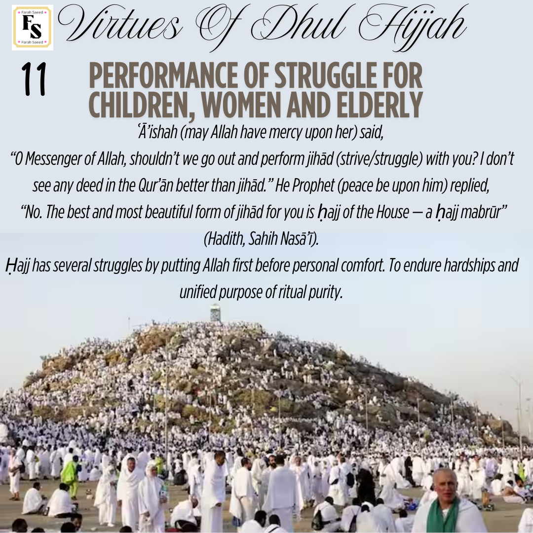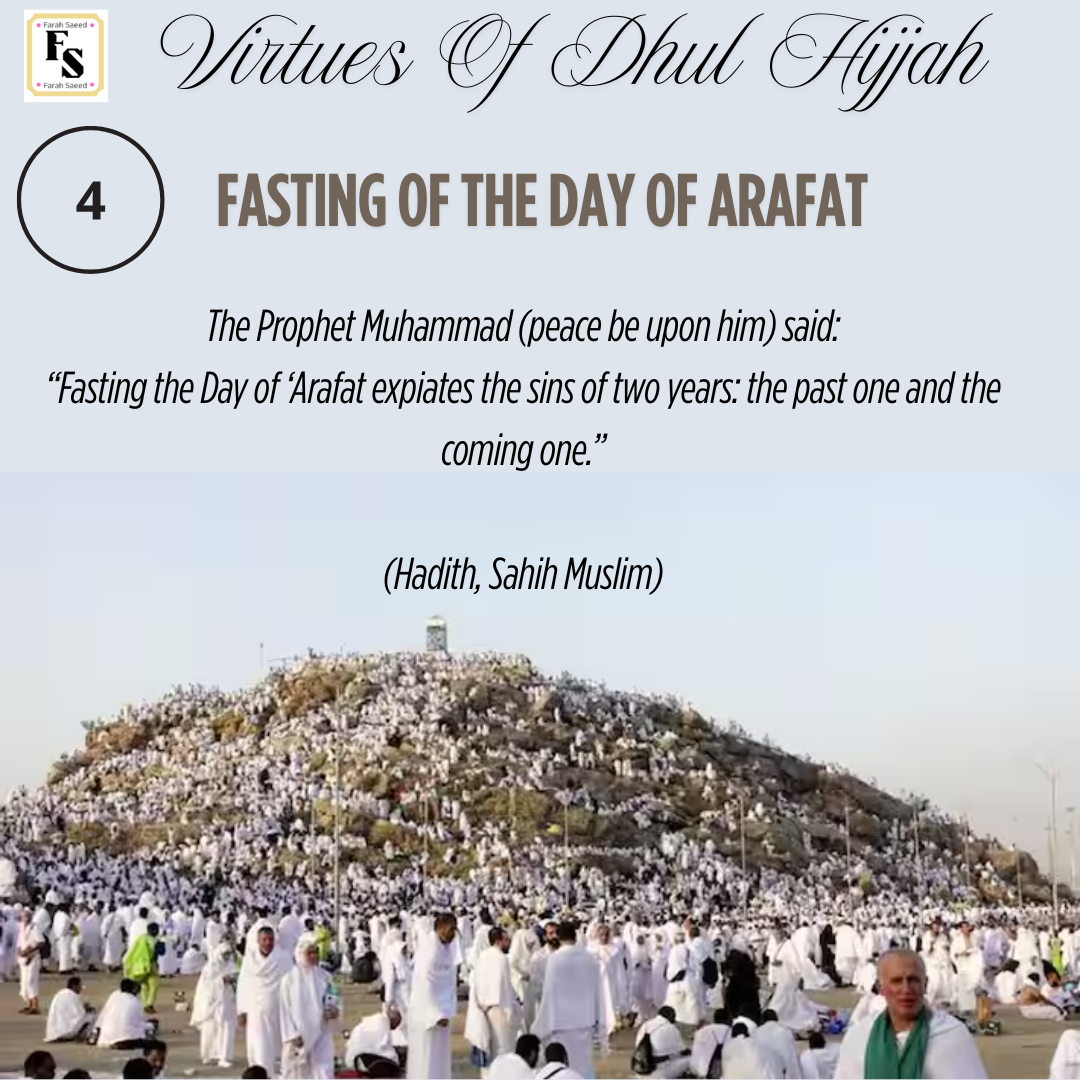 - Fast to the first nine days of Dhul Hijjah, especially on the Day of Arafah.