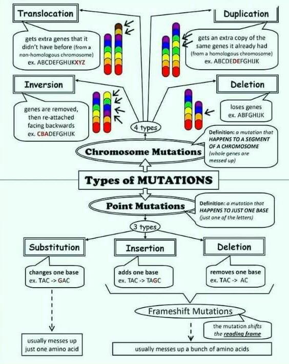 Figure 3: Types of mutations that may arise in genetic aberrations