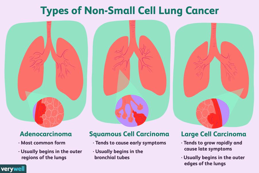 There are certain patterns of disease displayed in NSCLC that correspond to the histological subtypes. Squamous cell carcinoma otherwise known as epidermoid carcinoma. It arises in the thin, flat cells that align the inside of the lungs. This typically occurs in proximal segmental bronchi that can grow slowly. Adenocarcinoma ascends from the lining of the sac-like structures called alveoli where gaseous exchange takes place. It also secretes mucus. It accounts for 50% of cases and initially manifests with fatigue, shortness of breath (dyspnoea), and pain in the chest. The severity of the chronic cough and bloody sputum because of coughing up blood (haemoptysis) soars in the later stages (Brar, 2025). Large cell carcinoma initiates in several types of large cells that reside in the lung tissue (National Cancer Institute, 2025). There is ca. 70% of NSCLC patients with durable effects and limited treatment. Overexpression of oncogenes, epidermal growth factor receptor (EGFR), deactivation of tumour suppressor genes p53, telomerase activation, and point mutation of Ras can stimulate proliferation and signal transduction pathways are amongst the genetic aberrations in lung cancer (Friedlin, McShane, and Korn, 2010). Therefore, the development of target therapy is essential and poses a major challenge as 50% of the underlying genes remain unknown (Fawdar et al., 2013).