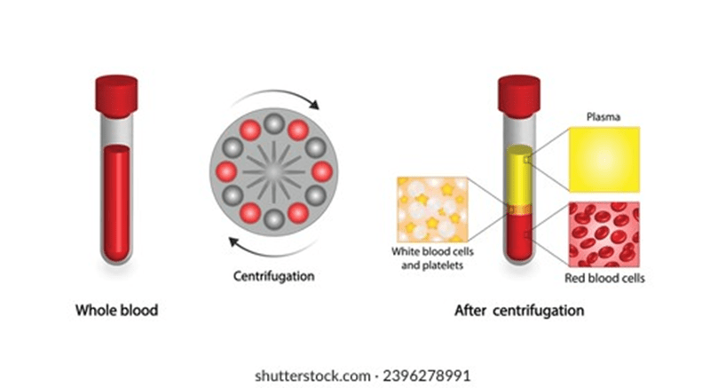 Centrifugation is the process in which blood samples are positioned in a balanced way and spun at high speed. They are divided into compartments based on their density using centrifugal force. Please see Figure 2. The aim is to maximise the utility of one whole blood unit (Baso and Kulkarni, 2014). The plasma, erythrocytes, platelets, and leukocytes have specific temperature and storage conditions to maintain therapeutic efficacy (Basu and Kulkarni, 2014).