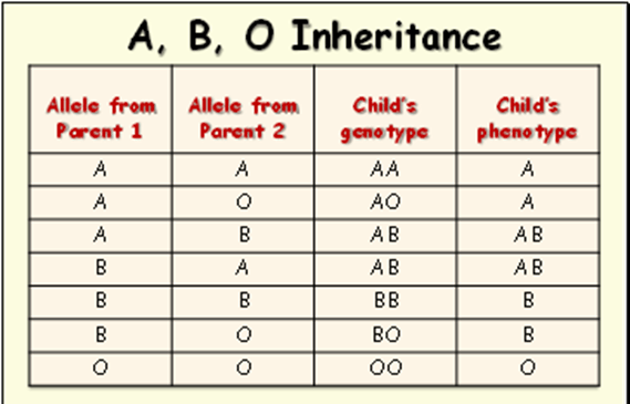The ABO system is presented in Figure 11 (Unknown, 2025). The gene for antigen A and the gene for antigen B are codominant. Both traits are expressed when the gene for A is from one parent and the gene for B from the other parent.