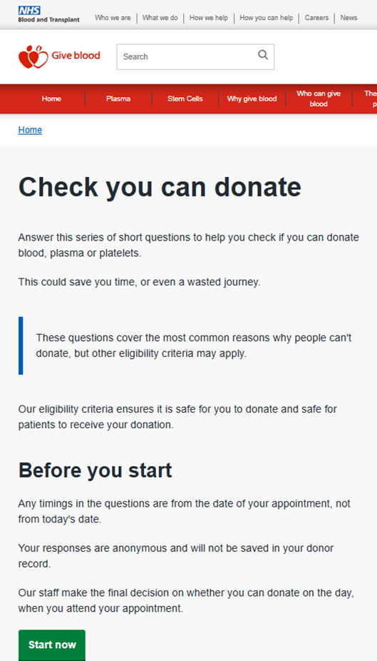 NHS Blood and Transplant (2025e) Who Can Give Blood? Available at: https://www.blood.co.uk/who-can-give-blood/ (Accessed: 10th August 2025)