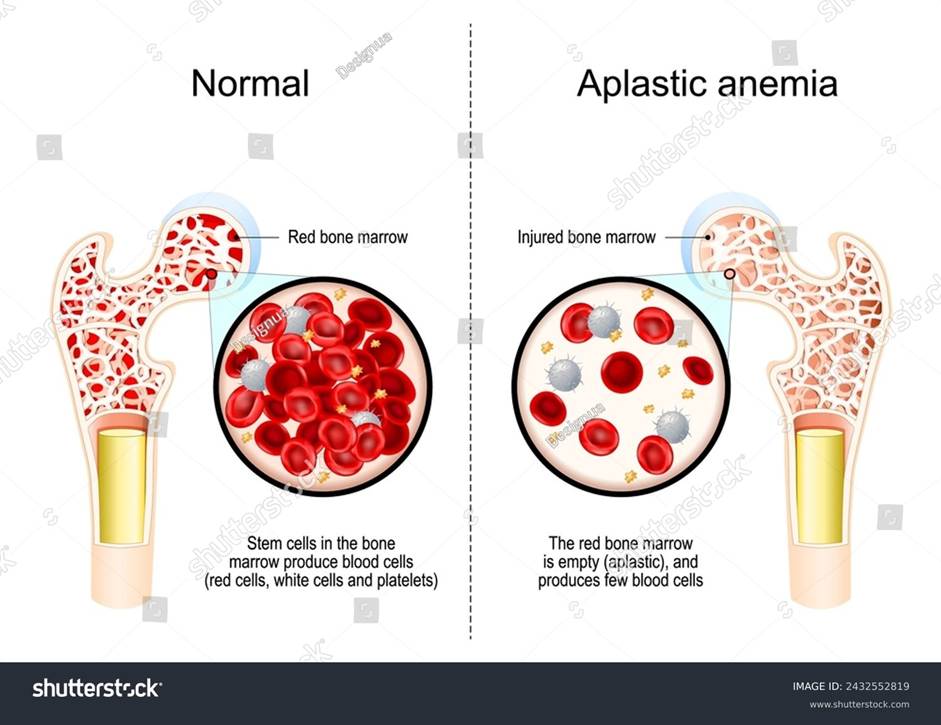 Macrocytic anaemia, as mentioned in Figure 19, arises when there is a high haemoglobin count and red blood cell volume. Amongst the causes of this form of anaemia is aplastic anaemia, where there is low frequency and production of all cells: red, white, and non-cellular fragments of platelets in the blood and bone marrow, as presented in Figure 27. Other potential causes of macrocytic anaemia are combined deficiency of iron and vitamin B12, hypothyroidism, and haemolytic anaemia (Ballinger and Pratchett, 2003).