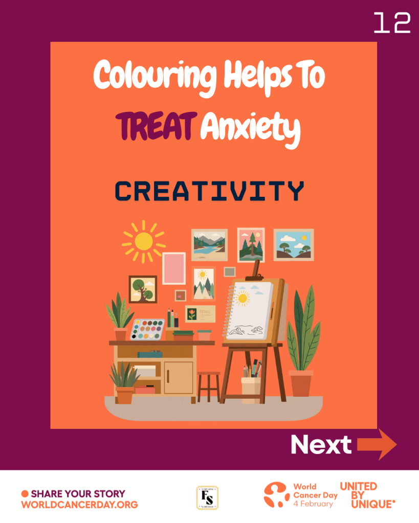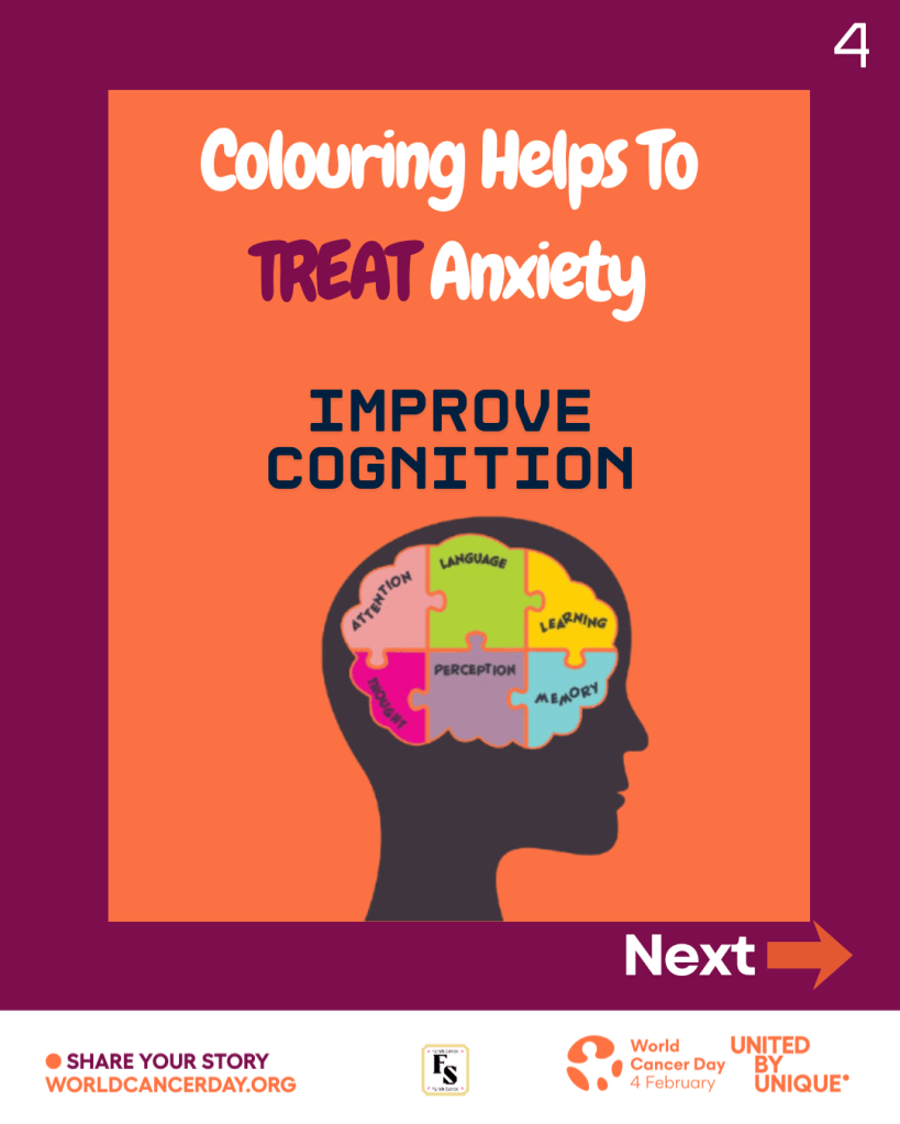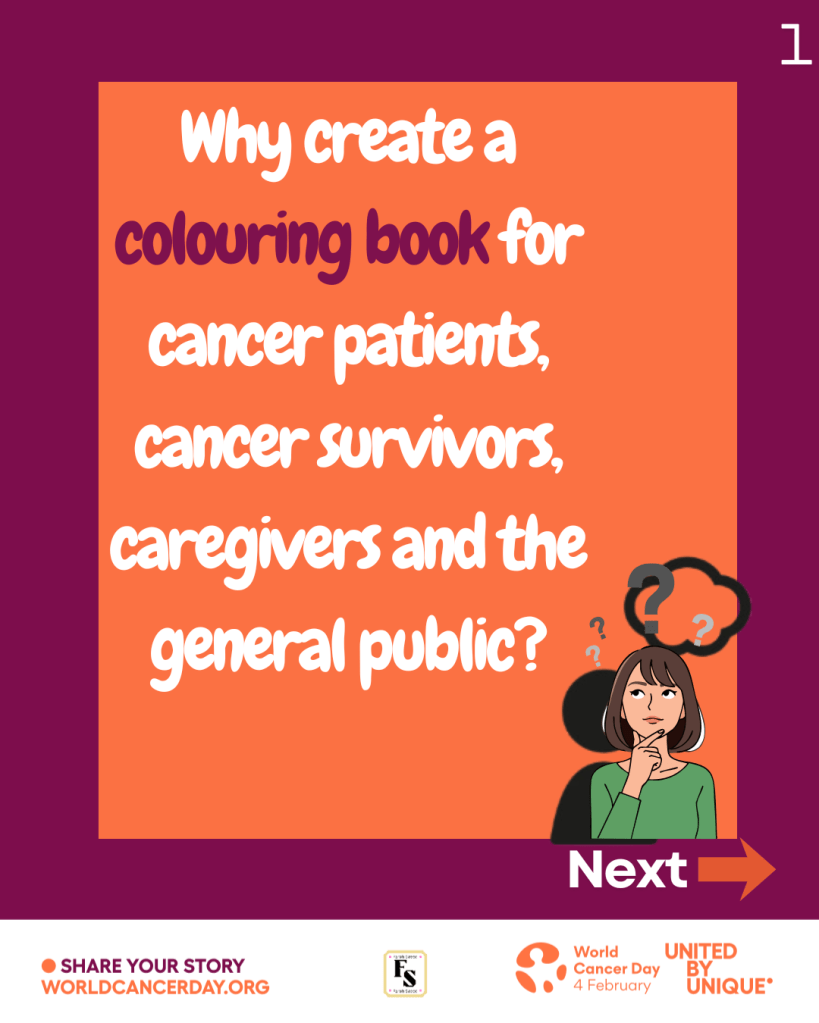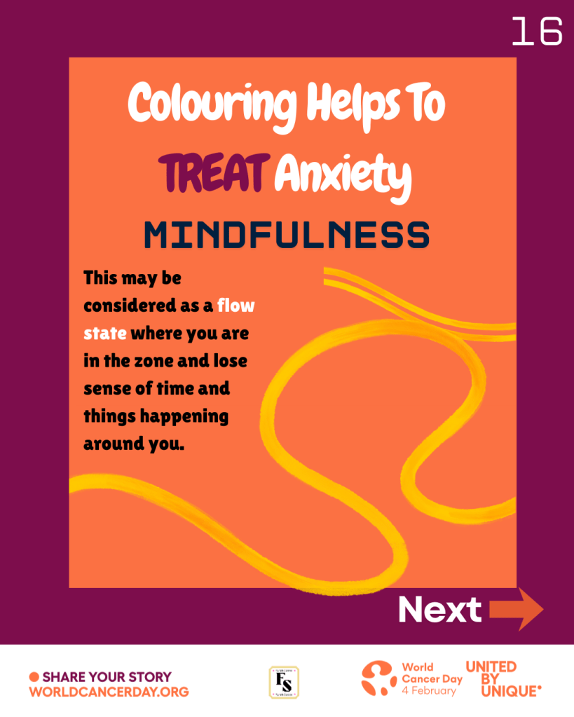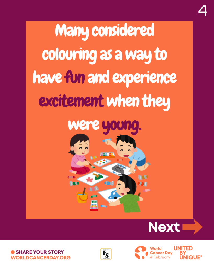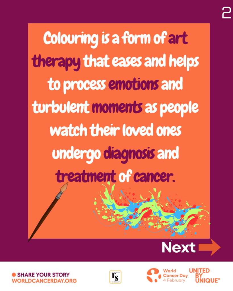 We are never too old for a splash of colour. Here, the FST team designed four unique drawings that reflect the emotive journey of some cancer patients.