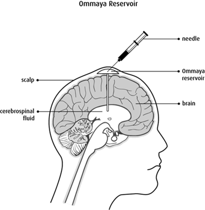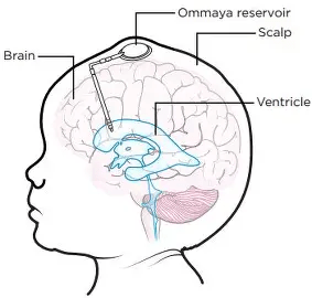 During surgery, surgeons place a small, soft plastic dome, called an Ommaya reservoir, under the skin of your scalp. Please see Figure 1. After surgery, chemotherapy and other treatments can be given by inserting a small needle through your skin and using a thin tube to deliver the treatment directly to where the tumour is. In this case, the treatment is 123I-ATT001 (Trial team and Mulholland, 2024; Cancer Research UK, 2025c).