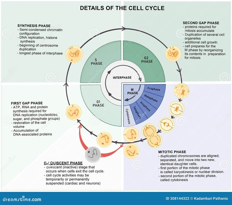 The role of CBD and THC in cancer also affected the cell cycle. The cell cycle consists of three phases. G1 (growth phase), S phase (DNA replication), and G2 (additional growth phase). The G0 phase is the quiescent phase where no action takes place. Please see Figure 2. Boggs et al. (2016) revealed that at 5 μM concentration, CBD or THC solely decreased the number of cells progressing through the cell cycle and placed them in the G0/G1 phase. The number of cells increased in the G0/G1 phase in the combined treatment. In contrast, the control cell line had more cells progressing through the cell cycle, 40% were in the G1/G0 phase, whereas 60% was in the S and G2/M phase. This illustrates how CBD, THC, or their dual effect selectively target the cancer cell cycle to induce arrest rather than the non-cancer cell line (Boggs et al., 2016).