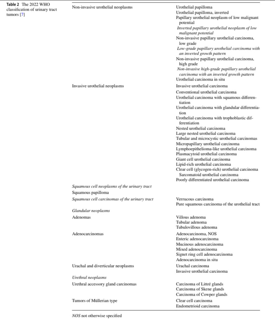 Rizkalla, C. and Tretiakova, M. (2024) Bladder and Urothelial: General WHO Classification. Available at: https://www.pathologyoutlines.com/topic/bladderwhoisup.html (Accessed: 15th January 2026)