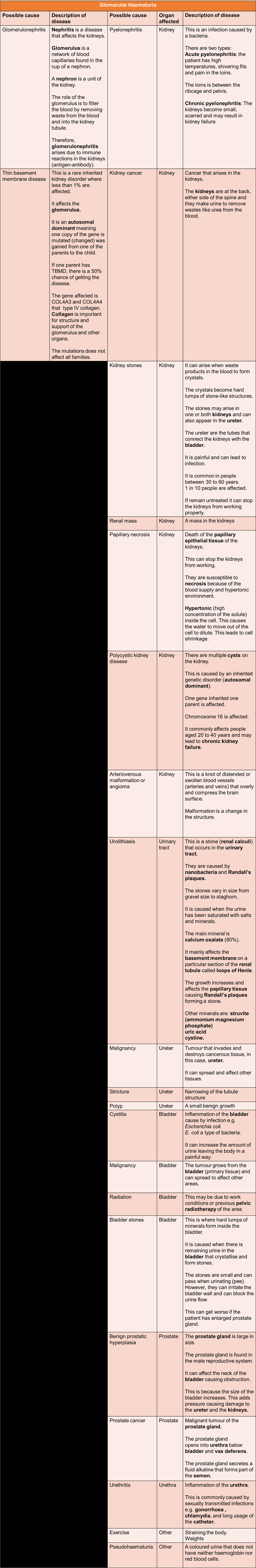 Other causes of haematuria other than the bladder