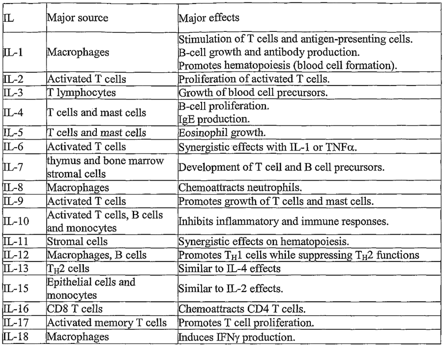 There is a higher density in the small bowel where more interleukin 10 are released. The table below presents a summary of interleukins and their major effects.