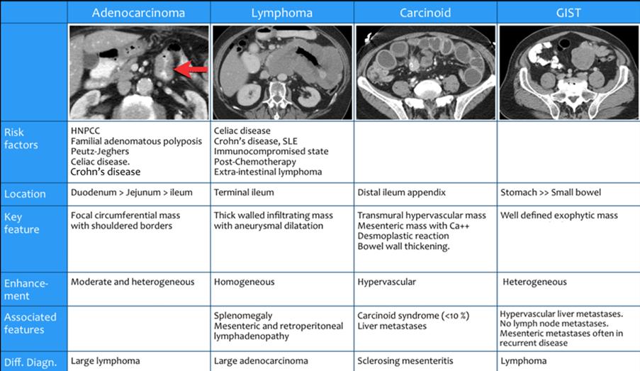 Khosla, D., Dey, T., Madan, R., Gupta, R., Goyal, S., Kumar, N. and Kapoor, R. (2022). Small bowel adenocarcinoma: An overview. World Journal of Gastrointestinal Oncology, [online] 14(2), pp.413–422. doi:https://doi.org/10.4251/wjgo.v14.i2.413. https://pmc.ncbi.nlm.nih.gov/articles/PMC8918997/