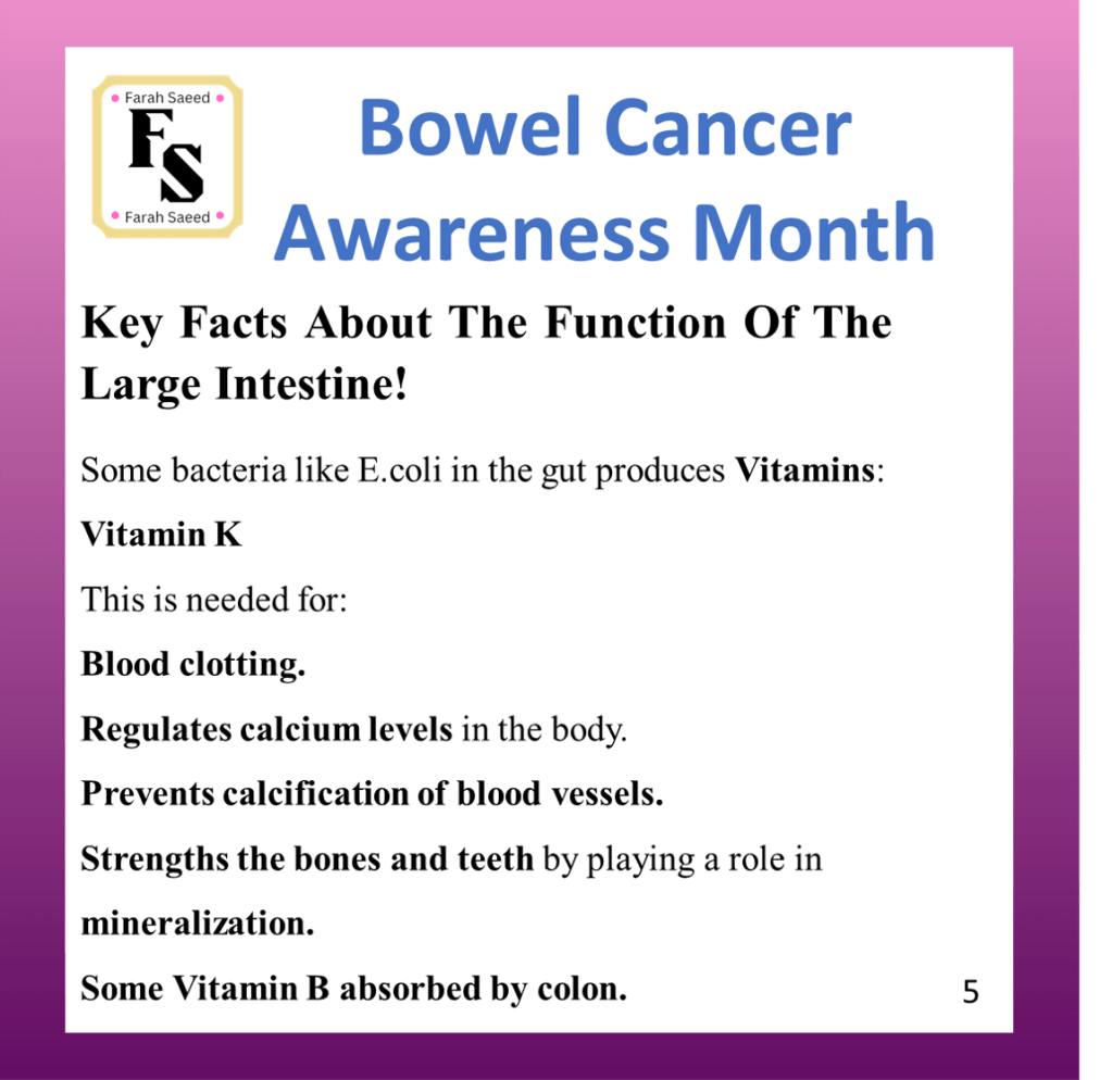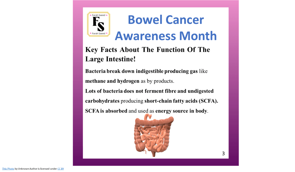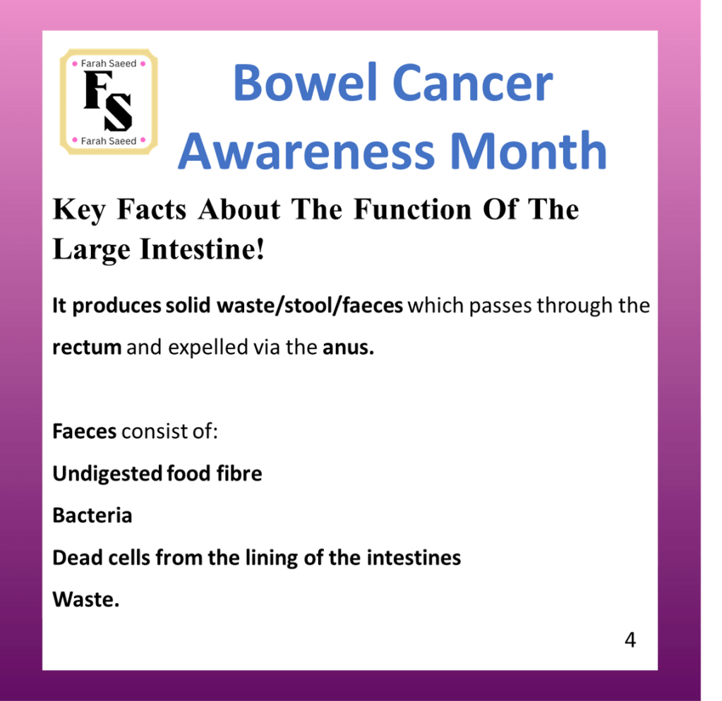 - To recap on the risk factors and symptoms of large bowel cancer.