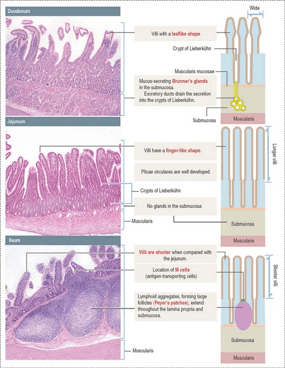 Histological images of the different segments of the small bowel (Basic Medical Key, 2016)