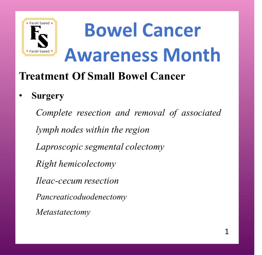 There is no specific or strict guidelines for small bowel cancer and is dependent on applying methods from colon and stomach cancer treatment protocols.