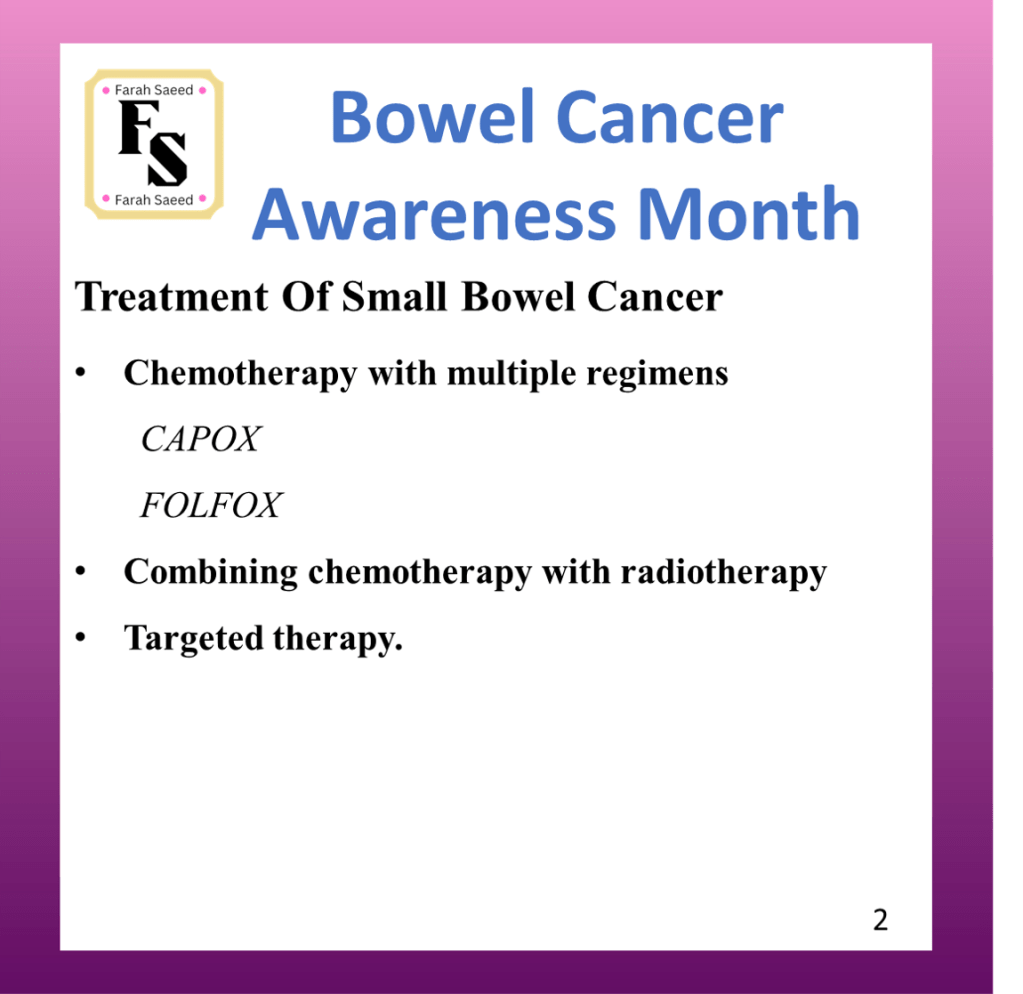 The combination of several chemotherapy has better efficacy and efficiency rate in eradicating cancer cells than a single agent regimen. The two predominant chemotherapy applied in patients with small bowel cancer are: