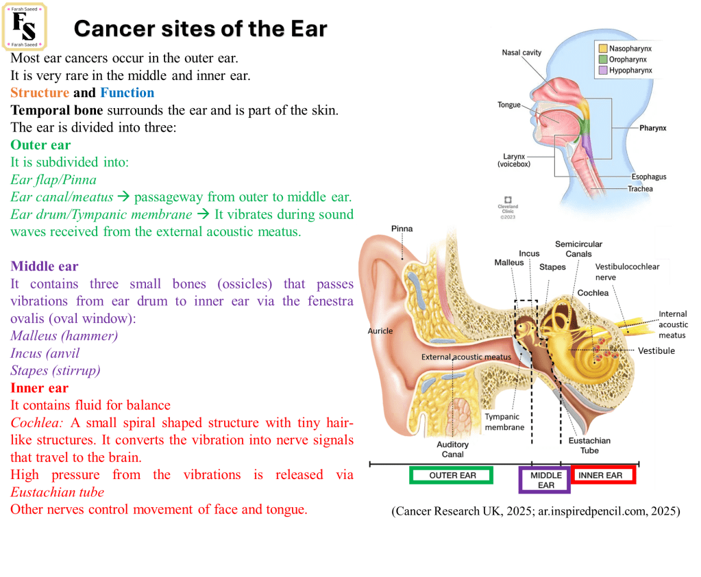 Cancer Research UK (2025) What is ear cancer? Available at: https://www.cancerresearchuk.org/about-cancer/head-neck-cancer/cancer-of-the-ear/what-is-cancer-of-the-ear