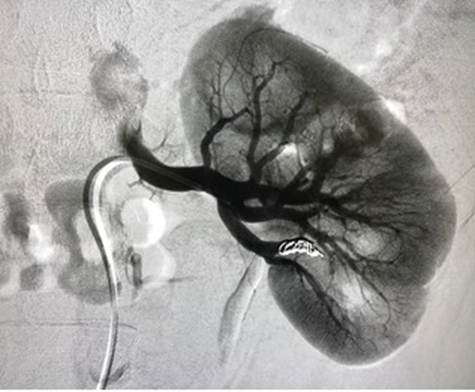 Figure 12: Angiogram of the renal artery undergoing embolization (Shutterstock, 2025)