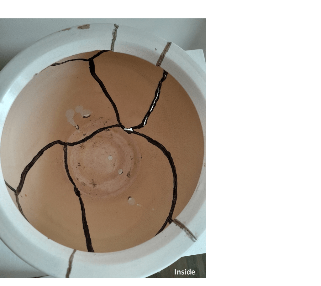 This ceramic vase revives the memory of the renowned Japanese kintsugi with gold and brown metallic patterns on the outer and inner walls of the heart. The Indian Mandala’s intricate patterns flutter on either side. The trapezium cognates balance with bronze doors that subjectively perceive ‘Beauty in the eyes of the beholder’.