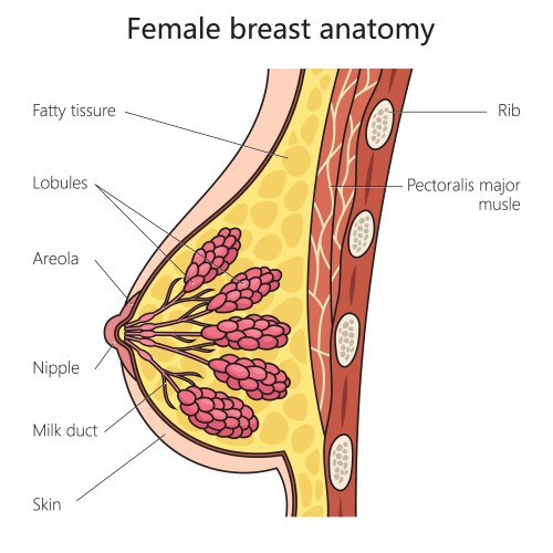 Breast cancer is a cancer that initiates in any part of the breast tissue. The breasts are mammary glands consisting of fat, milk glands, and ducts (World Cancer Research Fund, 2025a). Please see Figure 1. The breast tissue continues to develop throughout the lifespan, especially during adolescence/puberty, pregnancy, and breastfeeding.