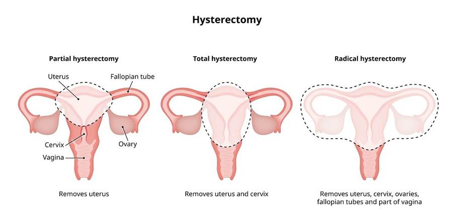 This involves the removal of the following areas in the female reproductive system: