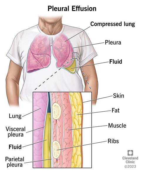 Pleural effusion is fluid in the pleural space in the chest.