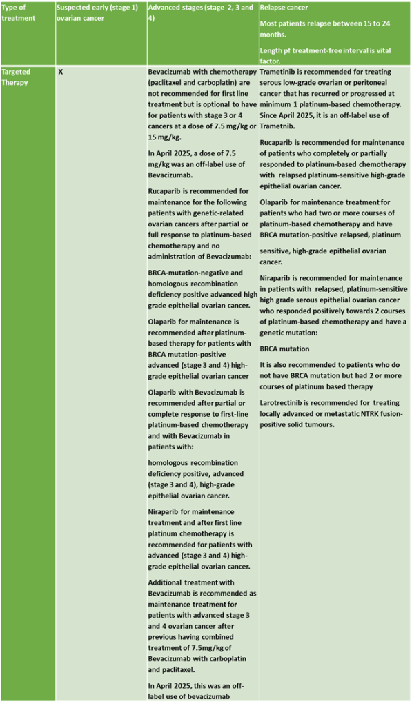 Cancer Research UK (2024) Treatment options for ovarian cancer Available at: https://www.cancerresearchuk.org/about-cancer/ovarian-cancer/treatment/treatment-decisions (Accessed: 12th March 2026)