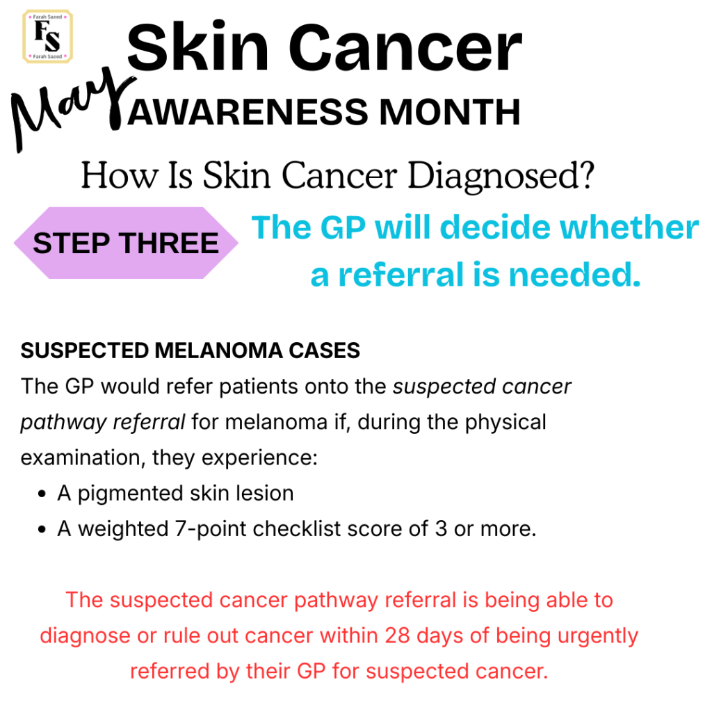 National Health Service (2026).Tests and next steps-Melanoma skin cancer. Available at: https://www.nhs.uk/conditions/melanoma-skin-cancer/tests-and-next-steps/ (Accessed: 11th February 2026)