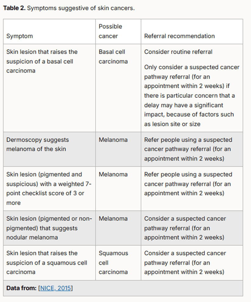 Please click the link below to access the NICE Guidelines on skin cancer.