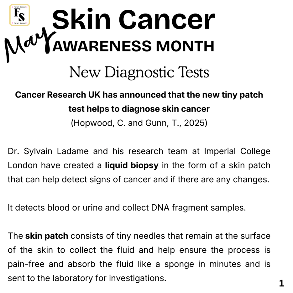 Hopwood, C. and Gunn, T. (2025). The tiny patch that could help diagnose skin cancer. Available at: https://news.cancerresearchuk.org/2025/09/29/skin-patch-to-diagnose-skin-cancer/ (Accessed: 11th February 2026)