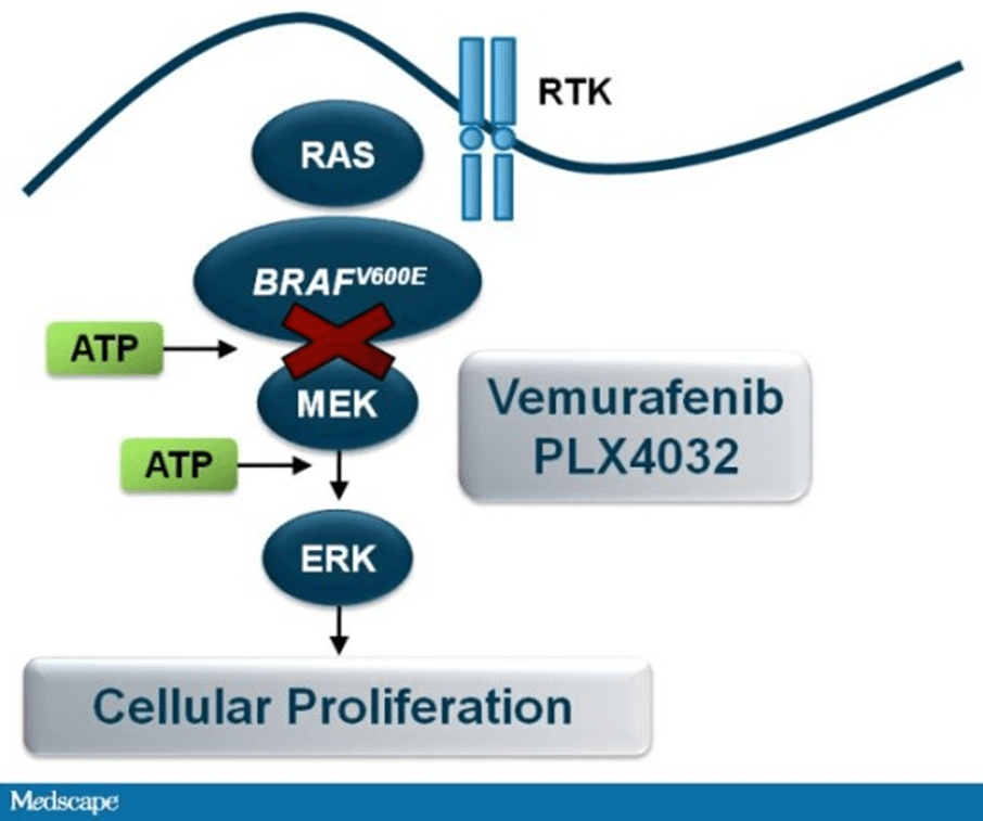 In patient cases of melanoma skin cancers that are caused by mutated genes, for instance, the BRAF V600 gene. There are several examples: