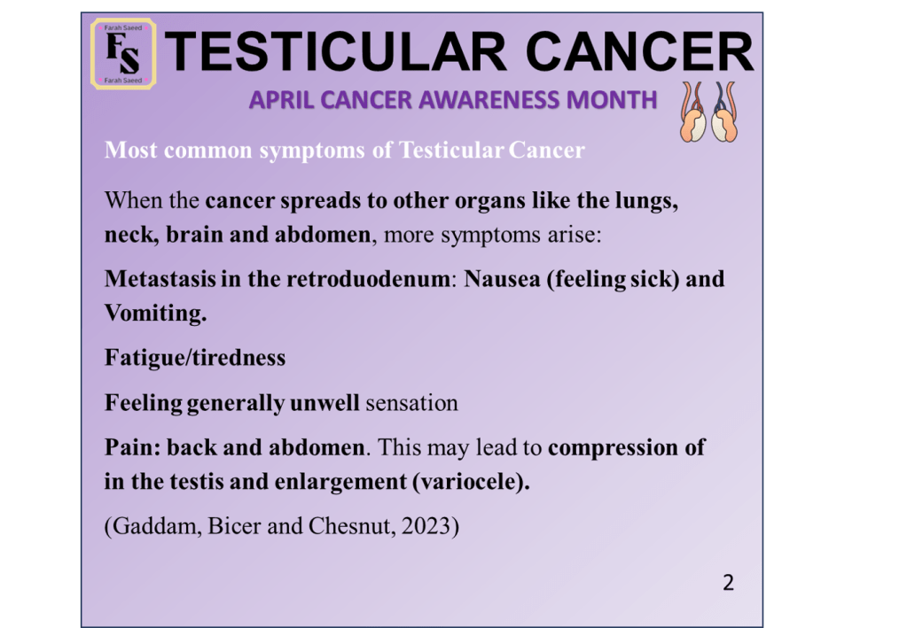 Gaddam, S.J., Bicer, F., Chesnut, G. (2023) Testicular Cancer. Available at: https://www.ncbi.nlm.nih.gov/books/NBK563159/ (Accessed: 3rd July 2025)