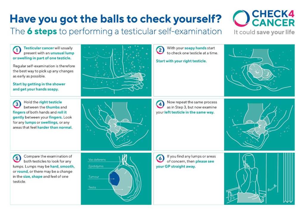 Check 4 Cancer (2021) Have you got the balls to check yourself? Available at: https://www.check4cancer.com/advice-and-awareness/blog/1602-have-you-got-the-balls-to-check-yourself (Accessed: 4th July 2025)