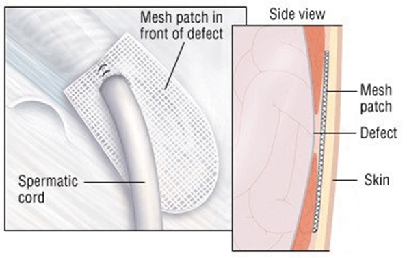 This can be resolved through a keyhole surgery or a cut in the inner thigh groin (National Health Service, 2025; Drugs.com, 2024). The open surgery involves cut in the inner thigh groin and push herniated tissue into position and repair opening with stitches or synthetic mesh to prevent future hernias.