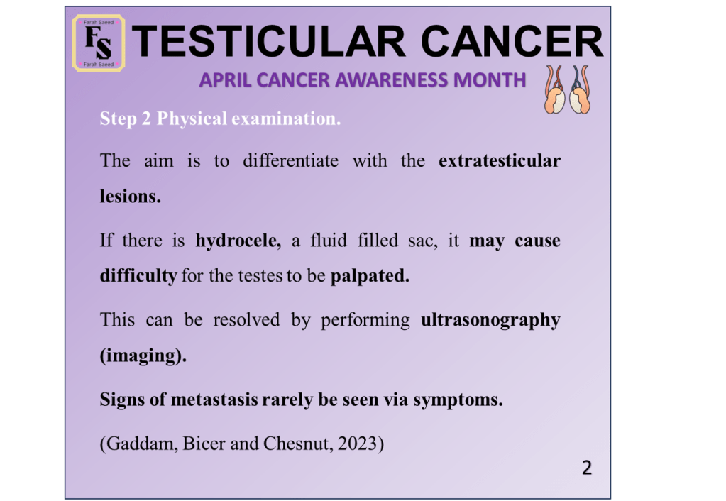 Gaddam, S.J., Bicer, F., Chesnut, G. (2023) Testicular Cancer. Available at: https://www.ncbi.nlm.nih.gov/books/NBK563159/ (Accessed: 3rd July 2025)