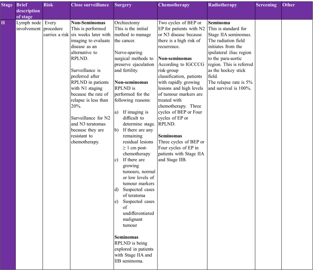 According to the International Germ Cell Cancer Collaborative Group (IGCCCG), patients with disseminated non-seminoma (low or intermediate IGCCCG) are treated with chemotherapy after surgical removal of the affected testicle (Wang et al., 2021).