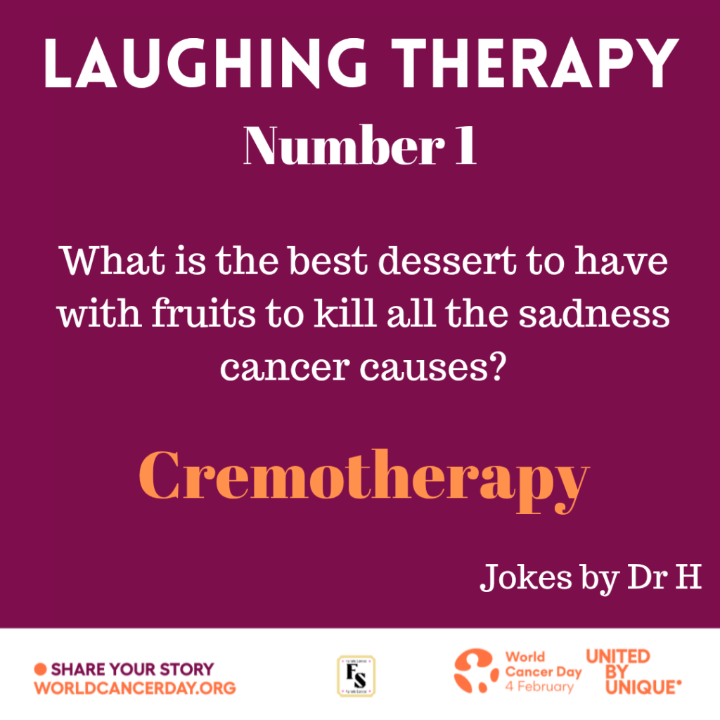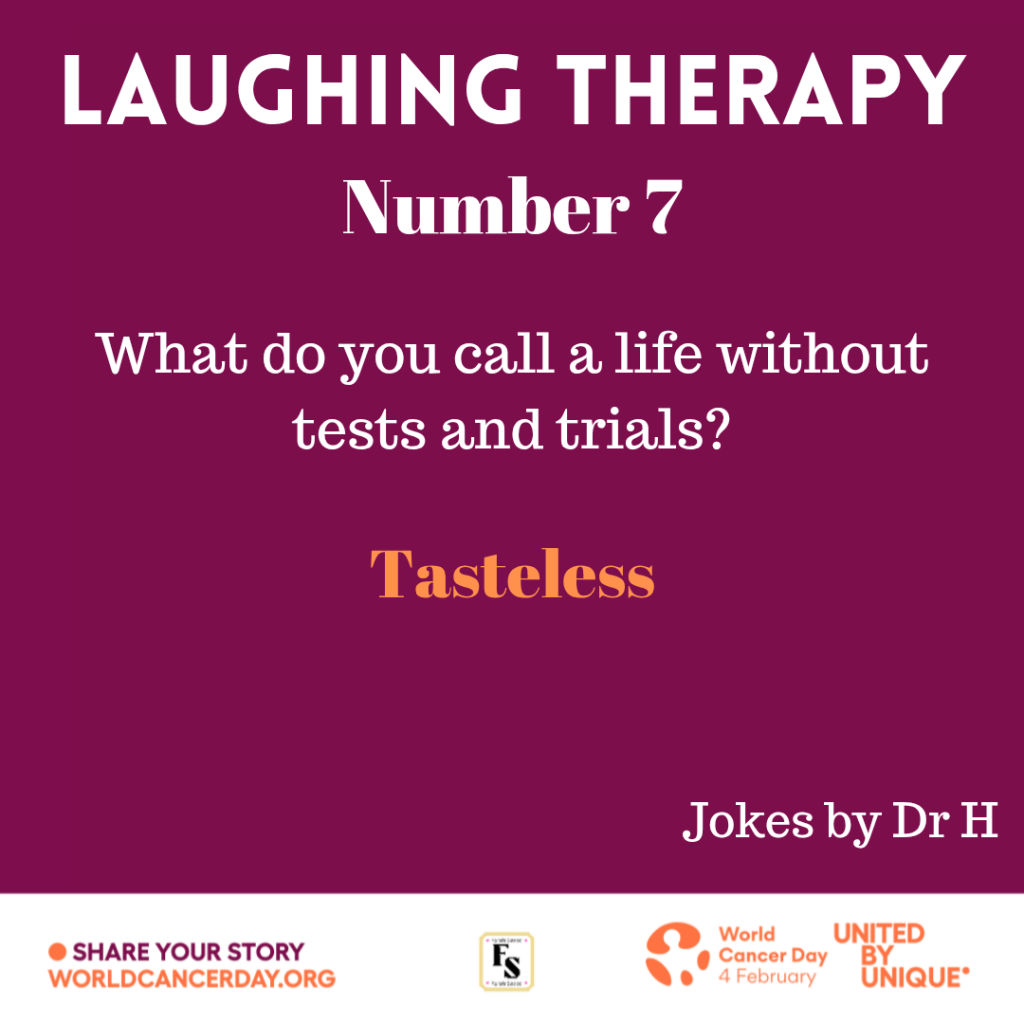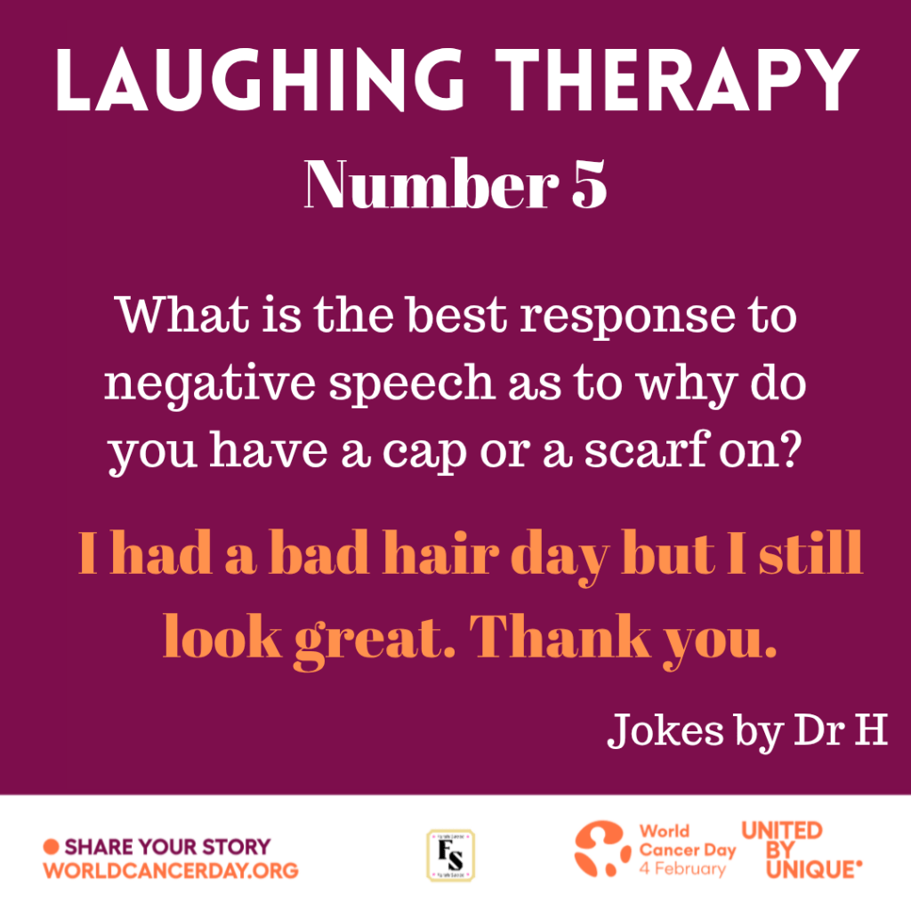 Surround yourself with people that laugh with you NOT at you. Cancer causes pain but you need to fight it through positive mindset regardless of your age. This can be achieved through smiling, laughter and building yourself whether through faith or close-knit support or a combination of both.