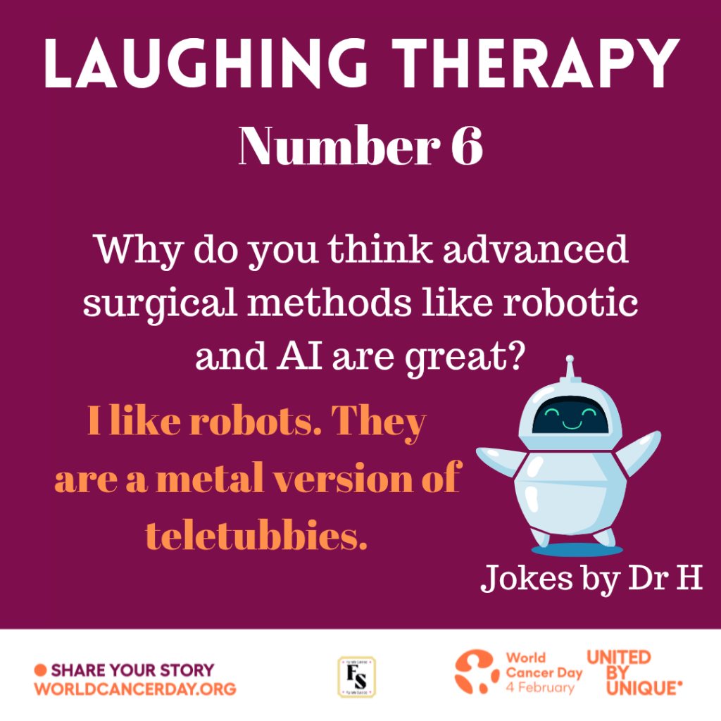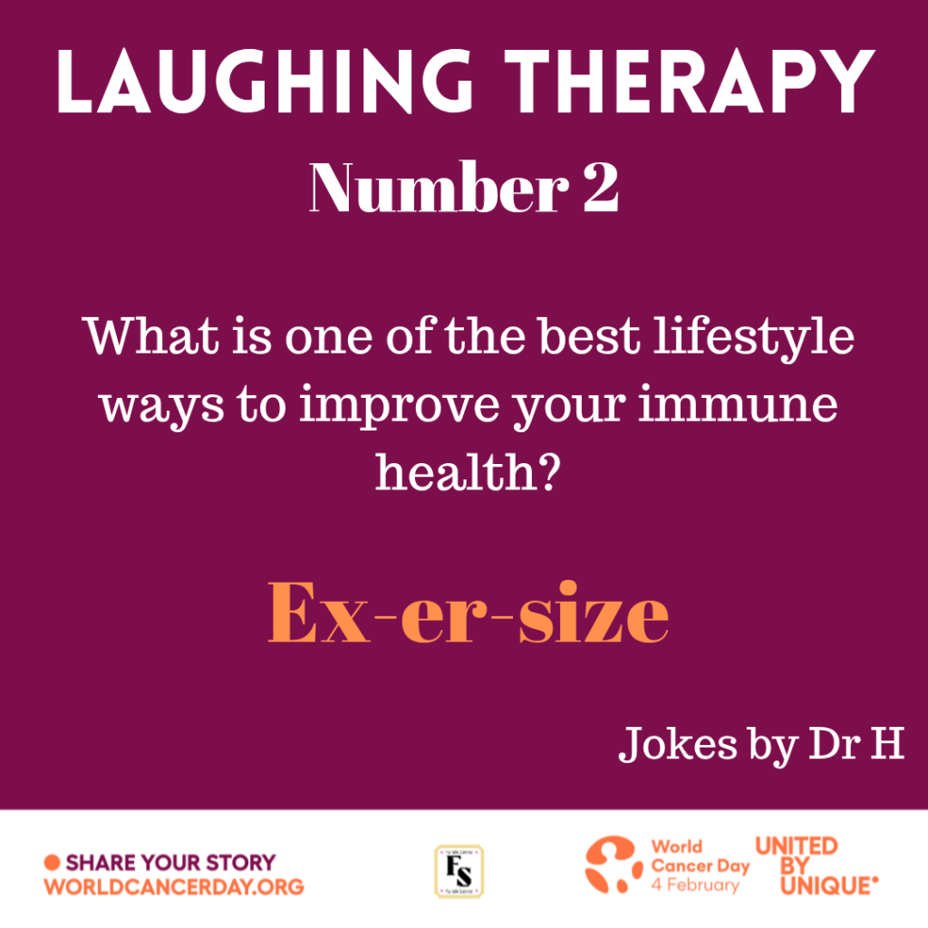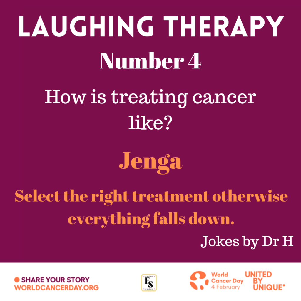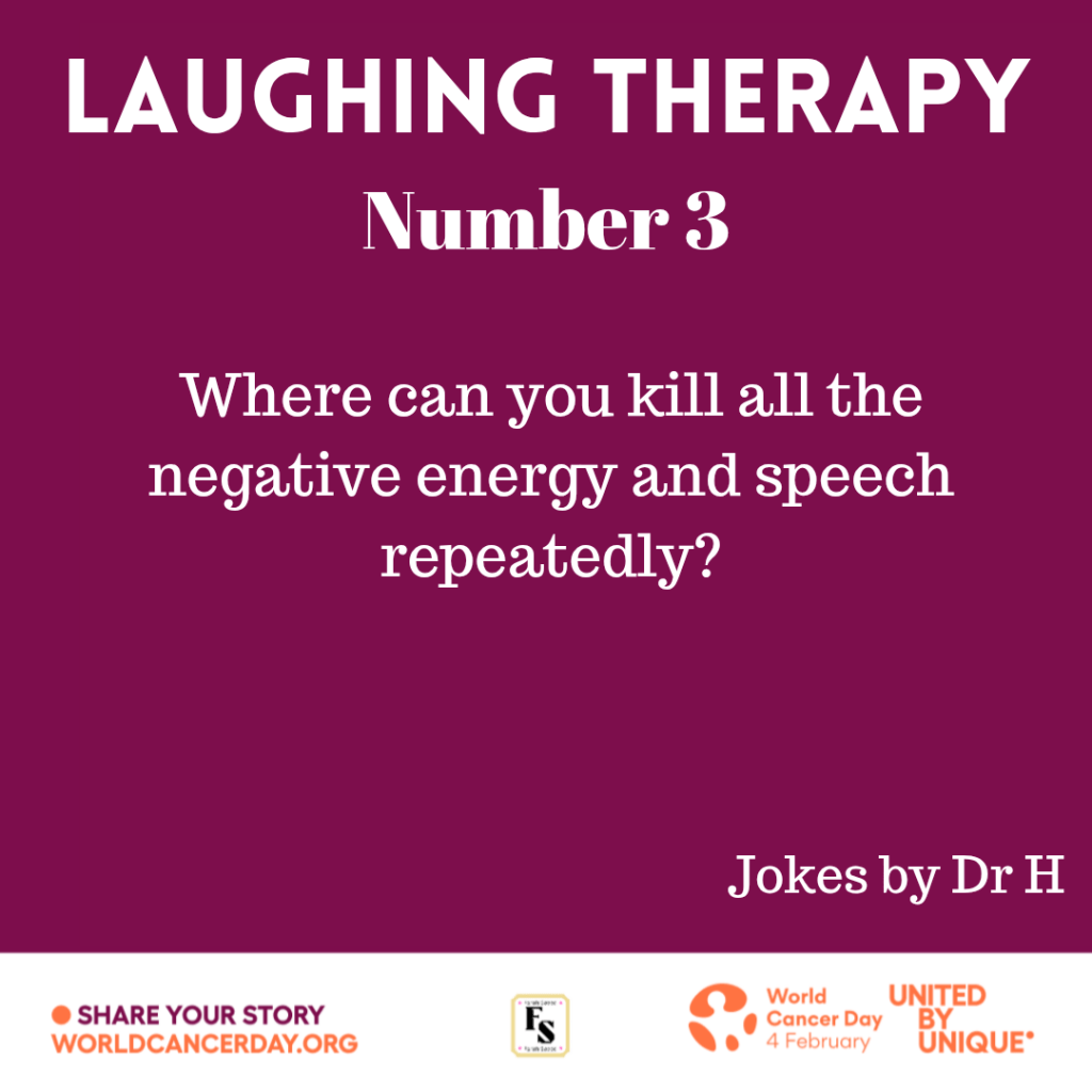Surround yourself with people that laugh with you NOT at you. Cancer causes pain but you need to fight it through positive mindset regardless of your age. This can be achieved through smiling, laughter and building yourself whether through faith or close-knit support or a combination of both.