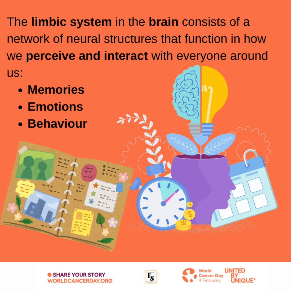 The limbic system orchestrates our mood, behaviour and memories. Every cancer patient undergoes a fluctuation of emotions when experiencing symptoms, waiting for results, receiving diagnosis and side effects of treatment.