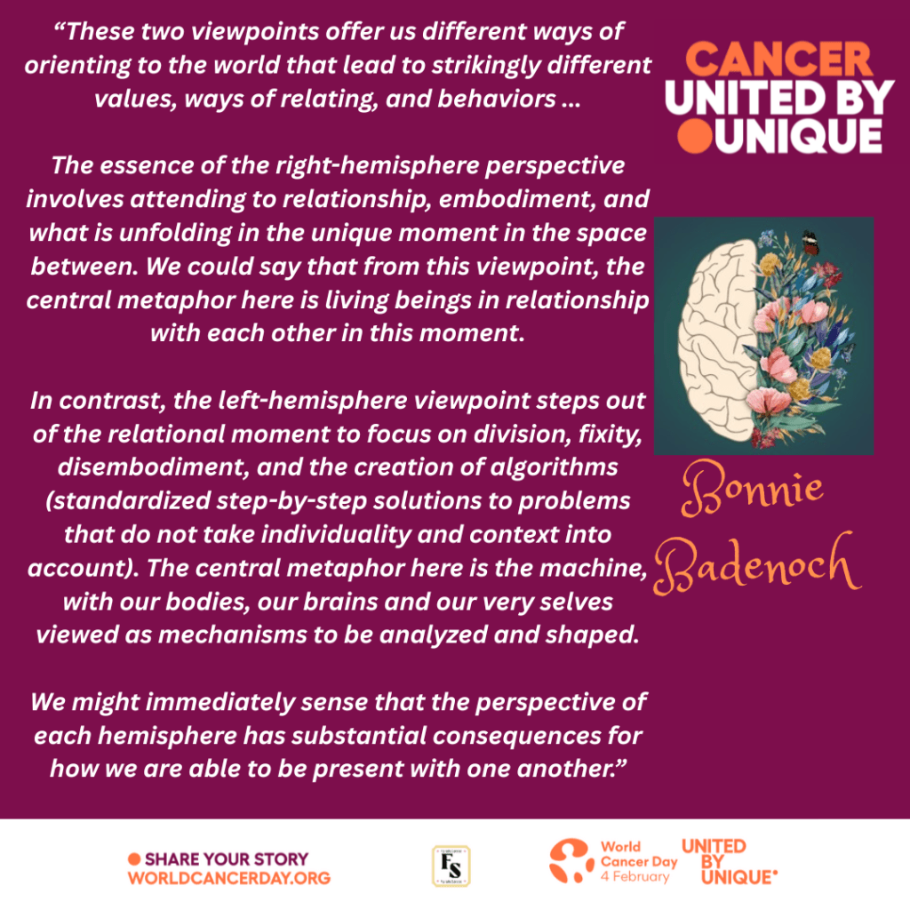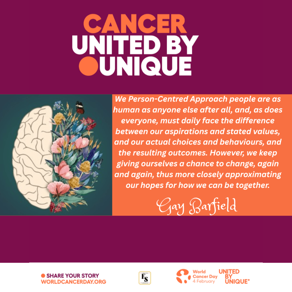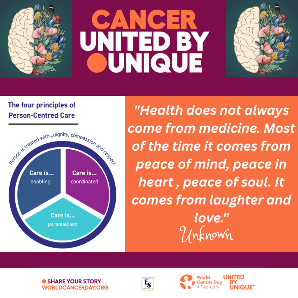 Person-centred care is vital to understand how each cancer patient feels, their wellbeing and connections to have a holistic approach.